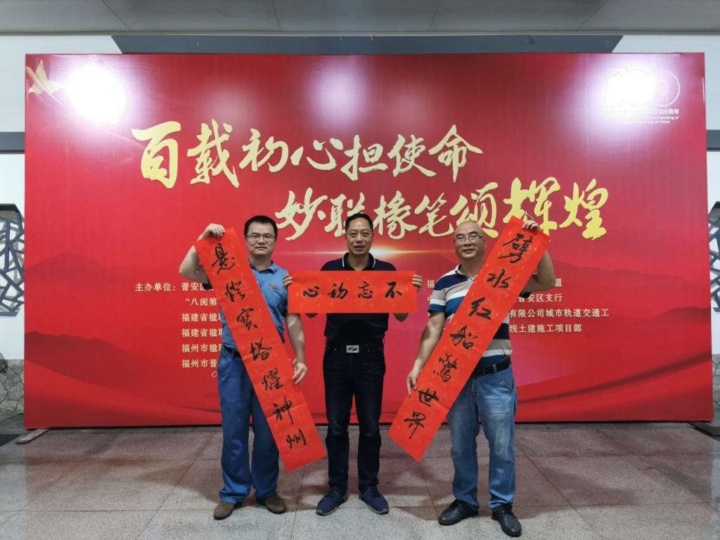 5月12日下午,受晉安區茶園街道黨工委邀請,我系黨總支書記邱滾忠、第四黨支部書記鄧元榮前往“八閩第一站”,參加薪火黨建聯盟單位聯合舉辦的慶祝中國共產黨成立100周年系列活動之“椽筆書聯頌黨恩”主題活動。