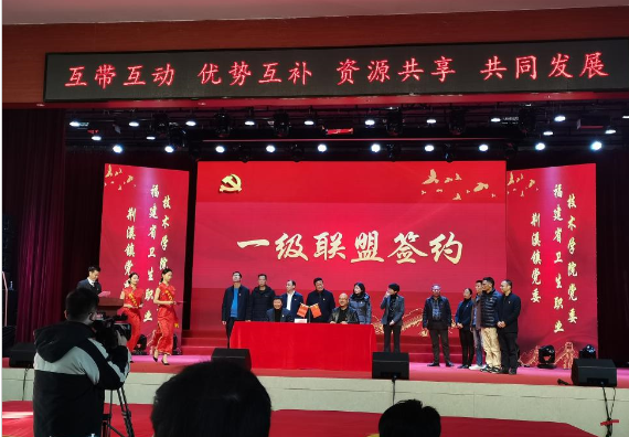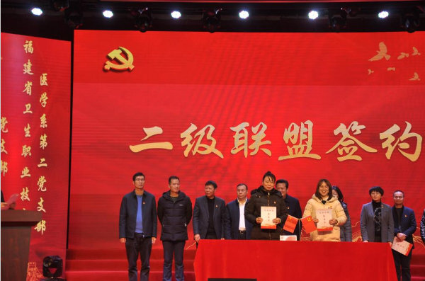 簽約儀式上,我校與荊溪鎮(zhèn)黨委簽訂一級(jí)黨建聯(lián)盟協(xié)議,醫(yī)學(xué)系第一、二黨支部分別與閩侯縣荊溪鎮(zhèn)衛(wèi)生院黨支部、亞鷹建筑科技集團(tuán)黨支部簽訂二級(jí)黨建聯(lián)盟協(xié)議。