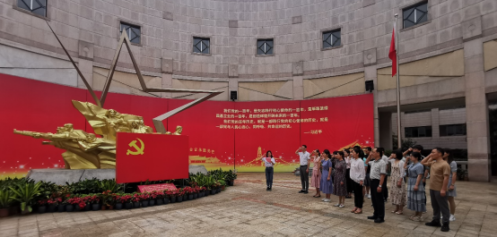 在福建省革命歷史紀(jì)念館,黨員們先后參觀了慶祝中國共產(chǎn)黨成立100周年系列專題展“理想照耀中國——中國共產(chǎn)黨人精神譜系”展館、“理想照耀中國——革命風(fēng)雷”展館等,近距離了解中國共產(chǎn)黨在反帝反封建的革命風(fēng)雷中不懈奮斗、快速發(fā)展的過程,深刻領(lǐng)會井岡山精神、西柏坡精神、谷文昌精神等一系列偉大精神,進一步認(rèn)識紅色政權(quán)來之不易、新中國來之不易、中國特色社會主義來之不易。參觀結(jié)束后,在革命紀(jì)念館雕像《奮斗》旁,面向鮮紅的黨旗,全體黨員舉起右拳,莊嚴(yán)宣誓,通過重溫入黨誓詞,重溫入黨時的莊嚴(yán)承諾和堅定決心,激勵大家牢記使命,堅定理想信念,永葆共產(chǎn)黨員的政治本色。