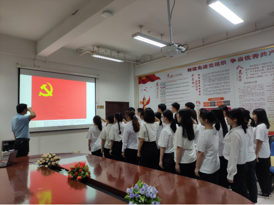 2021年7月6日,醫學技術系黨總支于系部會議室舉行新黨員入黨宣誓儀式。醫學技術系總支書記陳俊穎、副書記林燕、黨總支委員及黨支部書記、新黨員參加了儀式。儀式由系黨總支專職組織員黃玲云同志主持。