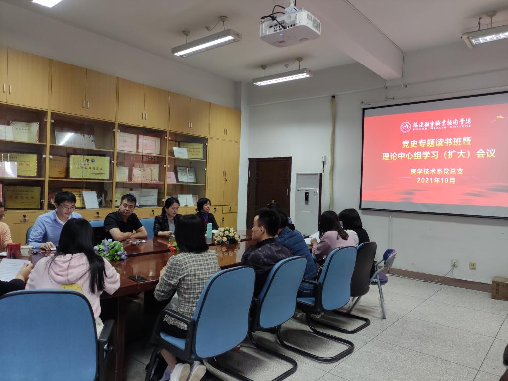 10月21日,醫學技術系黨總支召開黨史專題讀書班第五次學習暨理論學習中心組(擴大)會議。會議由醫學技術系黨總支書記陳俊穎同志主持,醫學技術系領導班子、黨總支委員、黨支部書記、教研室主任、團總支書記、系辦人員、實訓中心人員及輔導員等參加了會議。