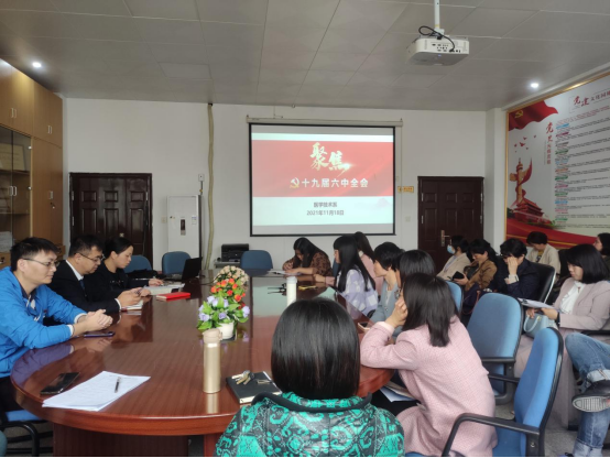為深入學習貫徹黨的十九屆六中全會精神,2021年11月18日,醫學技術系召開教職工會議,傳達學習黨的十九屆六中全會精神。會議由黨總支書記陳俊穎主持,醫學技術系全體教職工參加學習。