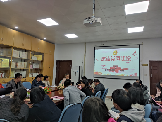 2021年12月9日,醫學技術系黨總支副書記林燕以《廉潔黨風建設》為主題,為醫學技術系全體黨員上黨課。為加強系部師德師風建設,非黨員教職工共同參加了本次學習。
