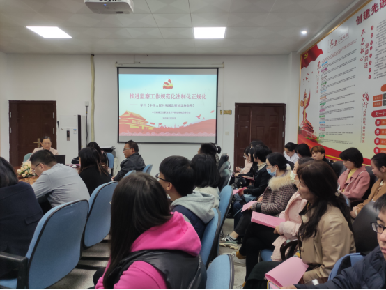林燕從堅持反腐的實踐基礎、反腐的強大思想武器、壓倒反腐的政治保證和斗爭勝利的動力源泉等四方面展開黨課,講述了黨的十八大以來以習近平同志為核心的黨中央勇于面對重大風險考驗和黨內存在的突出問題,開展了具有新的歷史特點的偉大斗爭實踐,并結合防腐事例詮釋了“廉”和“潔”。最后,她組織大家學習了《中華人民共和國監察法實施條例》,進一步強化廉潔風氣。