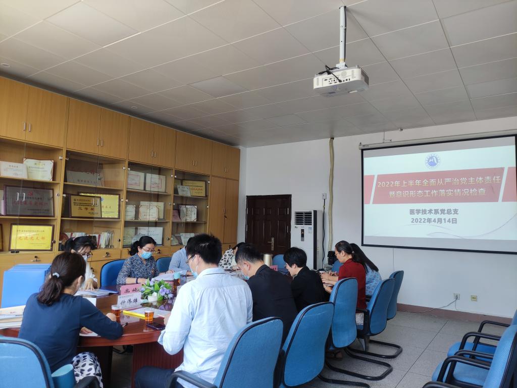 2022年4月14日,校黨委委員黃銘珊帶隊黨委組織統戰部副部長謝宗穎,黨委宣傳部工作人員高施,醫學院黨總支專職組織員陳恩平一行4人,赴醫學技術系黨總支開展2022年上半年全面從嚴治黨主體責任暨意識形態工作責任制落實情況檢查。醫學技術系黨政領導班子成員、總支委員參加本次督查。
