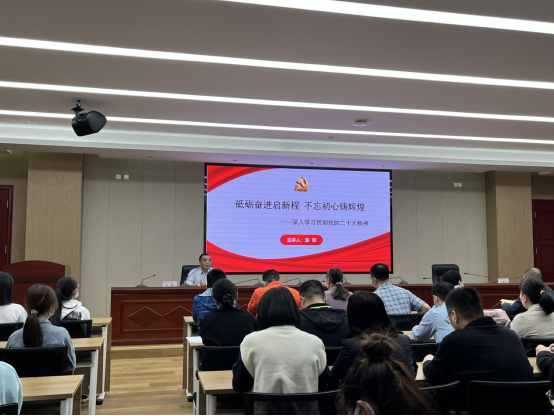 11月24日,學校紀委書記游鋒走上講臺,以《砥礪奮進啟新程 不忘初心鑄輝煌》為題,為醫學技術系黨員、學生入黨積極分子、師生代表以及紀委辦公室黨支部、農工黨支部共100人宣講黨的二十大精神。