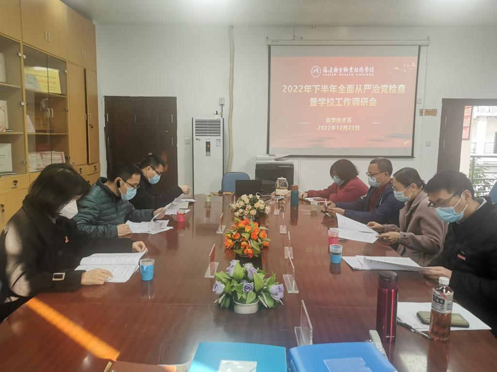 2022年12月22日,黨委書記曾武祈帶隊來到醫學技術系黨總支開展2022下半年全面從嚴治黨主體責任落實情況檢查。