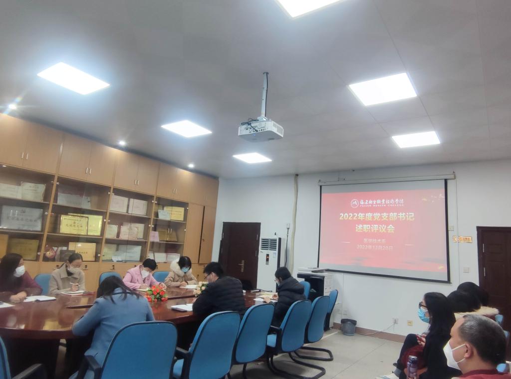12月20日,醫學技術系黨總支召開會議,聽取各黨支部書記抓黨建工作述職,并開展現場考核評議。黨總支委員、各支部黨員代表參加會議,會議由醫學技術系書記柯瓊鶯主持。