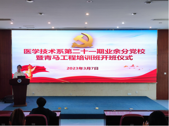 3月7日,醫(yī)學技術(shù)系第二十一期業(yè)余分黨校暨青馬工程培訓班開班。醫(yī)學技術(shù)系黨總支書記柯瓊鶯出席開班儀式并作動員講話。醫(yī)學技術(shù)系副書記林燕,學生黨支部書記、團總支書記、團總支副書記以及培訓班學員參加開班儀式。