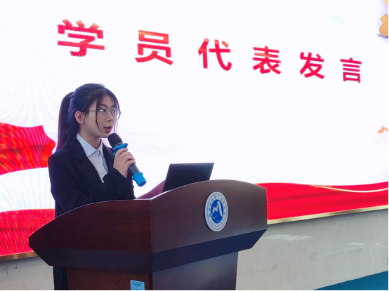 21影像301班王鴻樺作為學員代表發(fā)言。她表示,黨歷來關(guān)心青年一代的成長,對青年寄予了殷切的期望。要珍惜本次學習和成長的機會,在學習領(lǐng)悟中堅定理想信念,在奮發(fā)有為中踐行初心使命,爭取在結(jié)業(yè)時交上一份滿意的答卷!