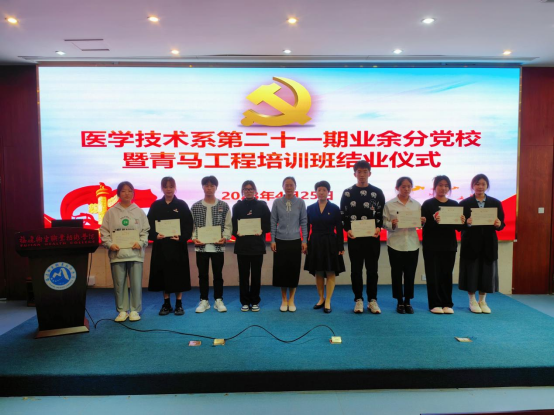 4月25日,醫學技術系第二十一期業余分黨校暨青馬工程培訓班結業儀式在實訓樓四樓報告廳舉行。醫學技術系黨總支書記柯瓊鶯、副書記林燕,學生黨支部書記、團總支書記、副書記以及培訓班學員參加本次結業儀式。儀式由22影像301班陳雨薇同學主持。