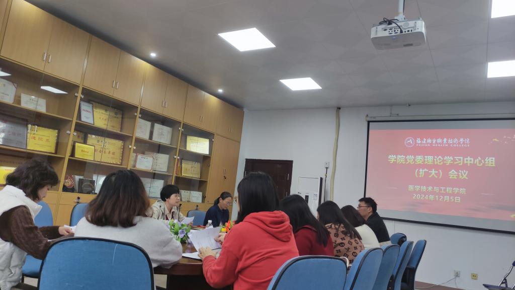 12月5日,醫學技術與工程學院召開黨委理論學習中心組(擴大)會議,主要學習習近平強軍思想、習近平文化思想,習近平總書記在中共中央政治局第十七次集體學習時、在安徽考察時、在湖北考察時發表的重要講話精神,同時繼續深入學習全國教育大會精神。學院黨委書記柯瓊鶯主持會議,學院黨委委員、黨支部書記等參加會議。