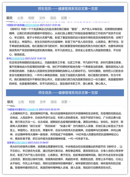 觀看后,健康管理系黨總支第一支部組織委員李丹同志表示,在這場(chǎng)沒(méi)有硝煙的抗疫戰(zhàn)場(chǎng)上,無(wú)數(shù)的醫(yī)務(wù)工作者、社區(qū)工作者、平凡的村干部、新時(shí)代雷鋒志愿者,毫不猶豫地戰(zhàn)斗在疫情防控的第一線,他們不怕犧牲積極地為每一個(gè)患者救治的身影、摸排居民出入動(dòng)態(tài)情況的身影、為重點(diǎn)人員提供生活物資保障的身影讓人們感動(dòng)不已。與時(shí)間賽跑,始終把人們的生命安全與健康放在首位,一件件小事做實(shí)做細(xì),創(chuàng)造了戰(zhàn)疫的大國(guó)傳奇,他們是我們的榜樣。在當(dāng)今年代,我們能做的或許不像他們那么偉大,但是當(dāng)我們努力地為國(guó)家貢獻(xiàn)自己一份力量時(shí),就是愛(ài)國(guó)情懷的體現(xiàn),也是最美的模樣。在平凡的崗位上,踏實(shí)做好本職工作,潛心教育、靜心育人。