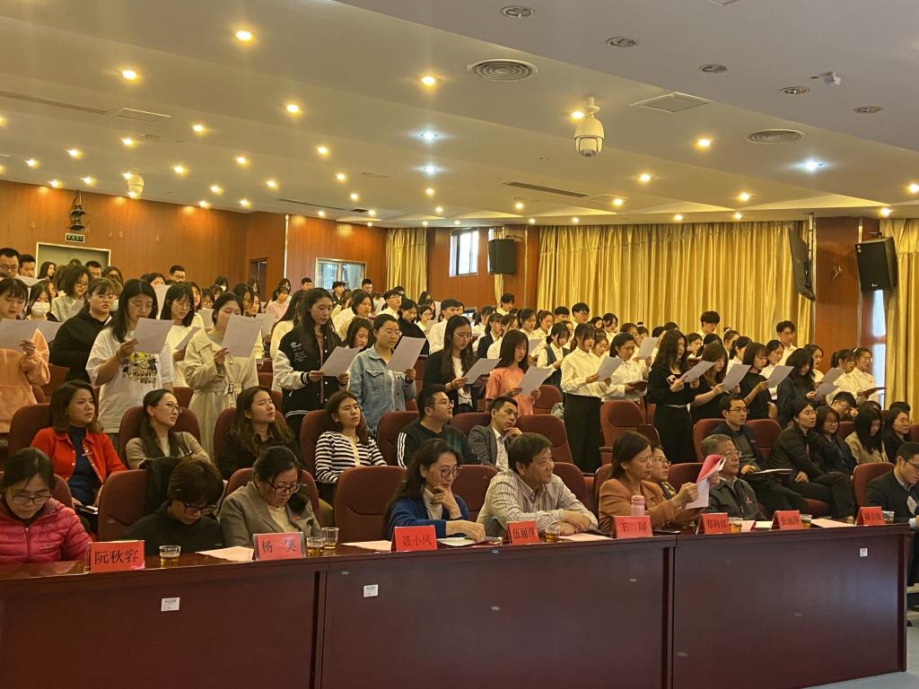 做承諾,履行三個規范,嚴守四條底線,做六有大學生。“我承諾,履行‘三個規范’:規范著裝,符合身份,大方得體;規范行為,遵規守紀,奮發有為;規范用語,尊師重教,文明禮貌。嚴守‘四條底線’:不吸煙、不酗酒,遠離毒品,養成良好生活習慣;不曠課、不喧嘩,保證出勤,提升專業知識技能;不信教、不傳謠,維護穩定,抵御各類安全風險;不作弊、不欺詐,誠信為本,樹立醫學職業形象。做有理想、有追求、有擔當、有作為、有品質、有修養的“六有”大學生。”參會學生現場宣讀并簽署了健康管理系學生行為承諾書。會后,各班組織全體學生做集體承諾。