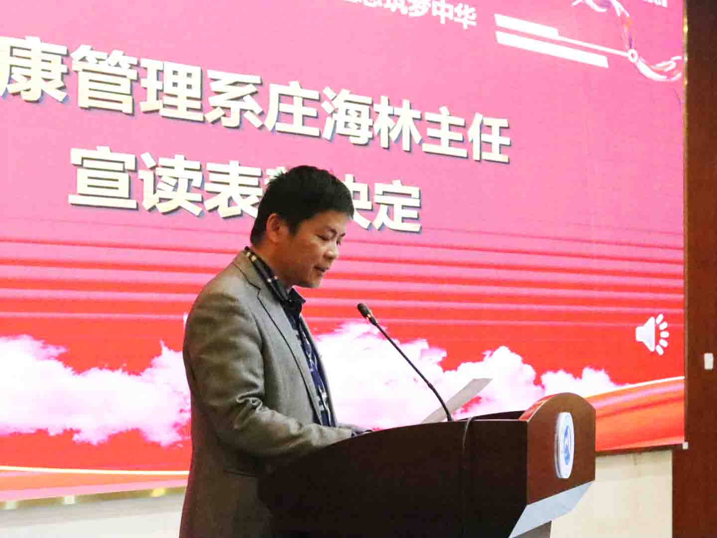 陳貞健在大會講話中肯定了2020年健康管理系師生取得的各項成績,成績的取得來之不易,他勉勵全體師生以此為新的起點,以實際行動貫徹落實健康管理系《迎接 “建黨百年”行動方案》和《學生管理質量提升行動方案》,開拓進取,奮力推進教育教學工作,以更加優異的成績為建黨100周年獻禮。