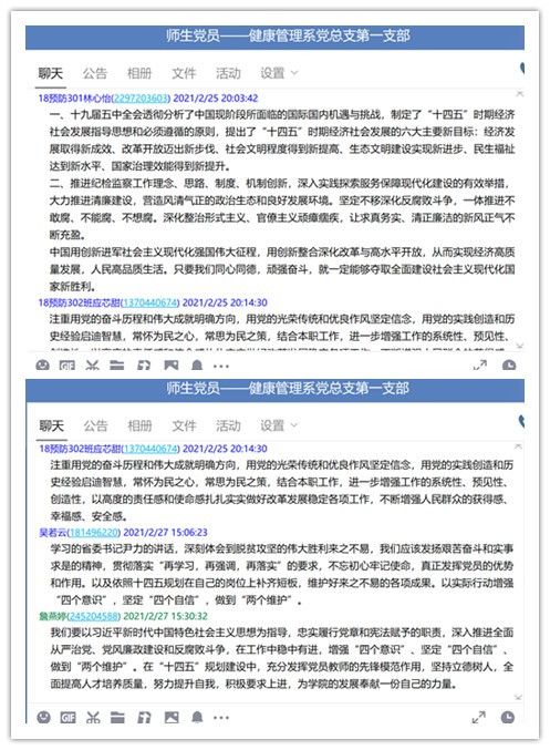 2020年2月25日健康管理系黨總支第一支部全體黨員在線學習以下三個文件:1、福建省十三屆人大五次會議和省政協十二屆四次會議和省政府第一次全體會議精神2、《福建開展“再學習、再調研、再落實”活動!尹力提出具體要求》3、中國共產黨福建省第十屆紀律檢查委員會第六次全體會議決議。與會黨員們認真學習,積極發表學習觀點。