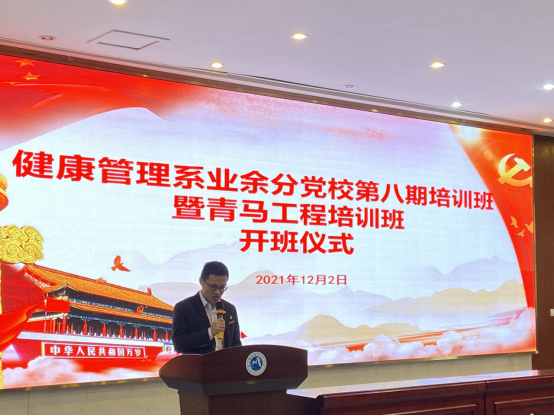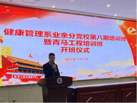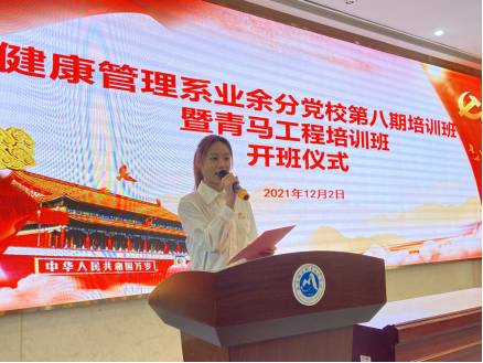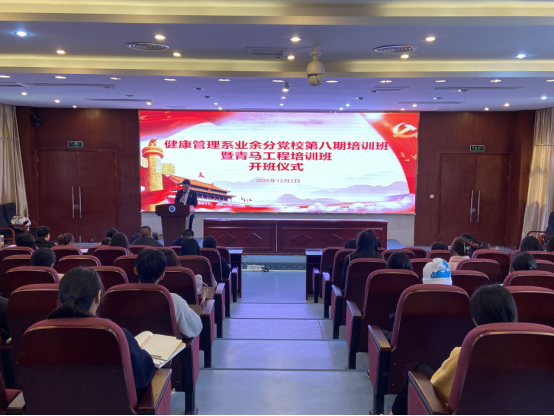 為進一步提高入黨積極分子和青馬工程培訓班學員的政治理論水平,強化政治素養,把好發展黨員入口關。2021年12月2日中午,健康管理系業余分黨校第八期培訓班暨青馬工程培訓班開班儀式在實訓樓四樓會議廳成功舉行。健康管理系黨總支書記黃曦書記、黨總支副書記吳燕玲書記、支部書記、輔導員以及本期128名培訓學員共同參與了此次開班儀式。