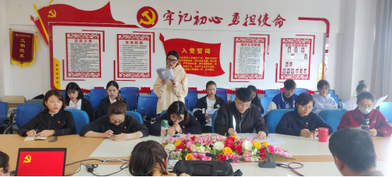 接著,預備黨員同志們表達了自身的想法與決心,不忘初心跟黨走,在今后的學習工作中,堅定目標、嚴格要求自身,努力改正現有不足,積極向優秀共產黨員學習,樹立先鋒模范作用,爭取早日正式加入中國共產黨。