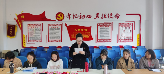 2021年12月27日,健康管理系黨總支第一黨支部舉行預備黨員轉正大會,大會討論并審議預備黨員邱多多等三位同志轉為正式黨員問題,全體支部黨員參加會議。