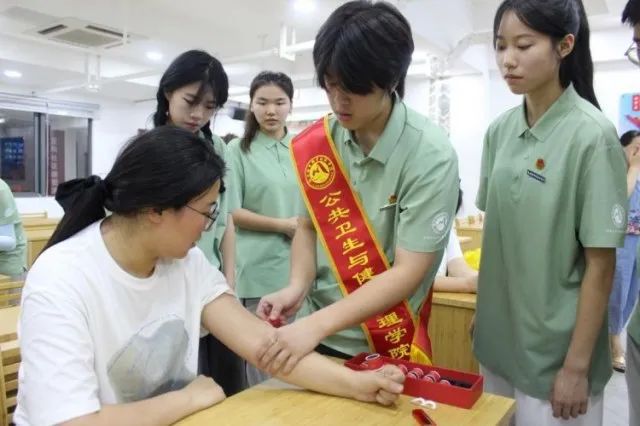 為更直接地服務社區居民,活動還設置了義診環節,免費為社區居民測量血壓,提供基礎的健康評估及艾灸等健康咨詢服務。此外,實踐隊分發日常健康小藥箱,內含風油精、清涼油、萬金油、抑菌液、西瓜霜潤喉片和藿香正氣軟膠囊等常用藥品,以備不時之需,讓社區居民感受到實實在在的關懷與溫暖。