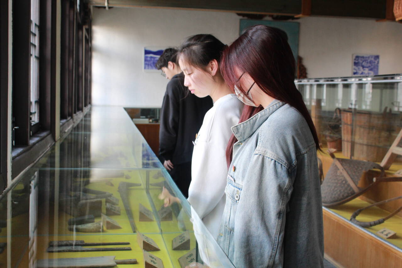 在嵩口民俗博物館,支部師生黨員們參觀館內陳列的農耕物品、嵩口古鎮的珍貴歷史文物以及民俗攝影等物品,了解了嵩口古鎮的農耕文明、古鎮歷史風貌和鄉土特色文化,讓大家深深折服于前人的聰明才智和能工巧匠,體會到了“術業有專攻”的道理。配合展館文字介紹和歷史圖片,支部師生們近距離感受到嵩口古鎮的發展與變革,以及建設者們開拓創新的精神底蘊,思想和精神受到深刻洗禮,進一步堅定了傳承匠心,信仰信念,激發奮進之志。
