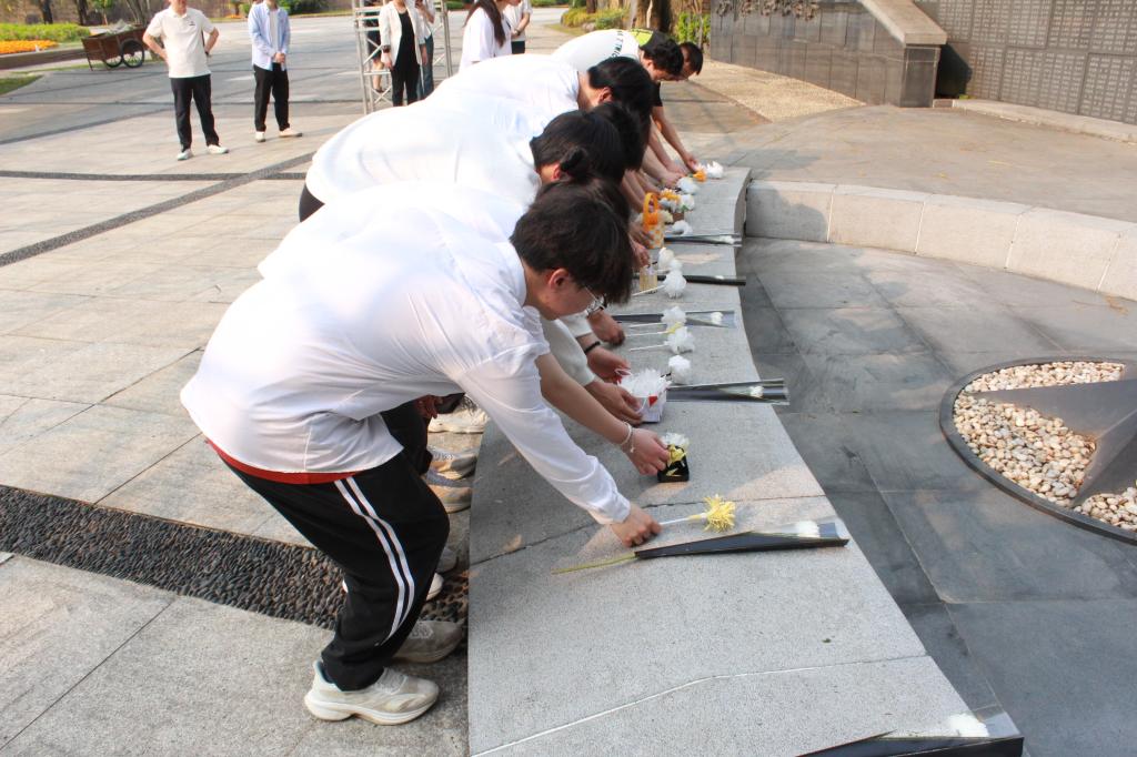 花束敬獻(xiàn)英烈,哀思祭奠忠魂。支部全體黨員在福州抗日志士紀(jì)念墻前莊嚴(yán)列隊、鞠躬默哀,敬獻(xiàn)手工制作的紙扎花束,追思革命先烈的豐功偉績,表達(dá)深切緬懷和敬仰之情。福州抗日志士紀(jì)念墻鐫刻8700多位福州籍抗日志士的芳名,這是兩岸目前鐫刻國共兩黨抗日志士英名最多的大型抗日紀(jì)念設(shè)施。展現(xiàn)福州人民艱苦卓絕的抗戰(zhàn)歷史和百折不撓的全民族抗戰(zhàn)精神。本次敬獻(xiàn)的紙扎花束均由公共衛(wèi)生與健康管理學(xué)院學(xué)生會安教部組織學(xué)生制作,他們認(rèn)真學(xué)習(xí)了紙扎花籃花束的制作方法,精心制作著各種花朵,用彩紙細(xì)心地折疊、剪裁、粘貼,每一片花瓣都蘊含著他們的深情與敬意,表達(dá)對革命先烈的敬仰。