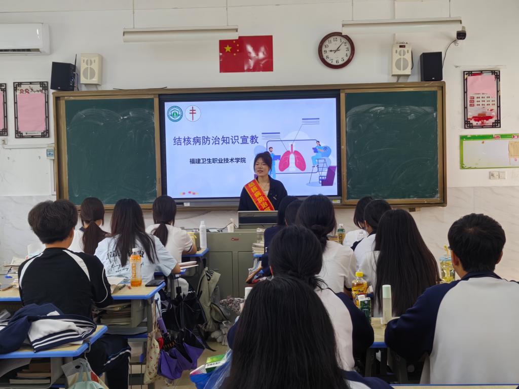 高一藥劑2班的活動同樣精彩紛呈,在志愿者講述活動目的、同學們填寫調查問卷后,福建省疾病預防控制中心的黨員專家陳江芬帶來了專業的結核病知識講座。專家憑借深厚的專業知識和豐富的實踐經驗,深入淺出地講解,為同學們答疑解惑,贏得陣陣掌聲。講座結束后的有獎知識問答環節,同學們積極互動,在輕松愉快的氛圍中加深了對結核病知識的理解。