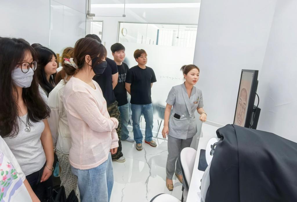 在醫學美容技術專任老師吳若云的帶領下,師生團隊參觀了華窈企業(窈窕淑女)的門店及實踐育人基地。企業技術負責人詳細介紹了其在醫學美容、生活美容領域的創新成果。學生們通過近距離接觸行業前沿技術,直觀感受到理論與實踐結合的重要性。