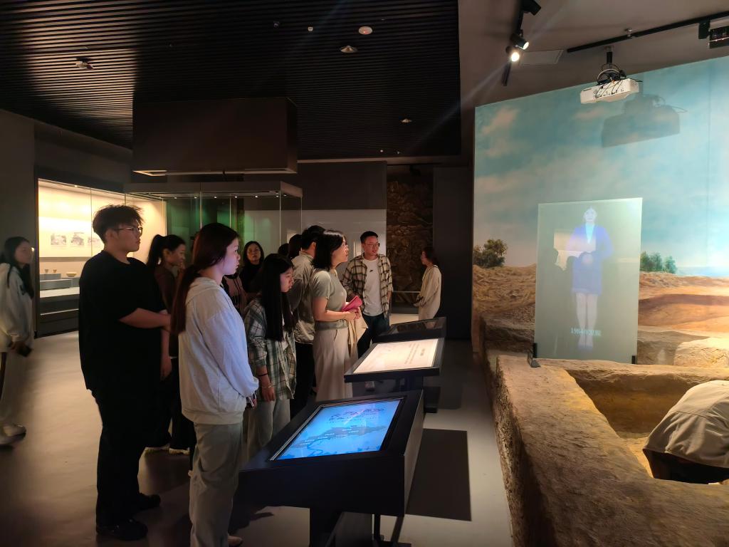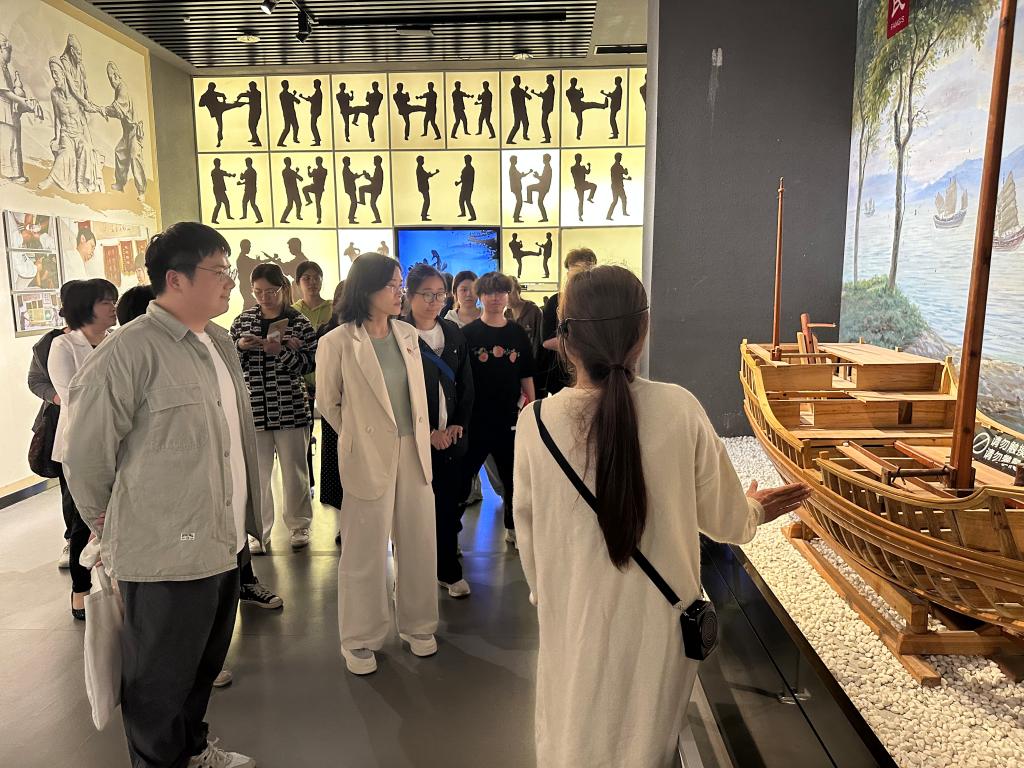 在閩侯縣博物館,在講解員的帶領下,師生們先后參觀“薪火相傳、置縣建治”“三邑同城、千載共榮”“風云際會、前仆后繼”三個單元陳列布展點,師生們深刻感受了八閩首邑閩侯縣深厚的歷史積淀和濃厚的文化底蘊,借助影像、圖文、藏品、雕塑等展示,感嘆于閩侯文化的源遠流長。在數字化技術手段加持下,身臨其境地體驗了閩劇表演和詠春拳體感互動項目。在“八姓入閩”裸眼3D沉浸室,全息投影的立體化場景再現了“八姓入閩”的歷史。