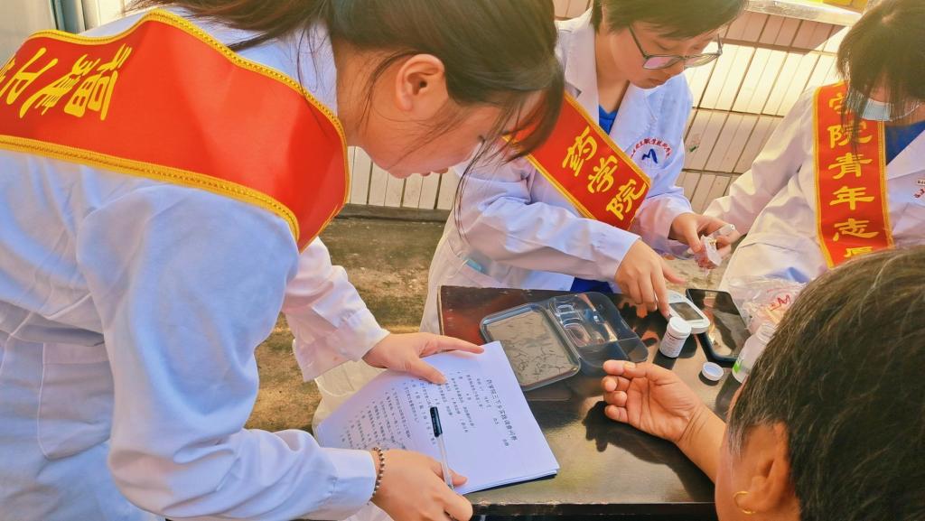 7月4日至7日,實踐隊義診小分隊,在拿口鎮拿口村一居、二居以及鄉衛生院開展三場次的愛心義診,為當地鄉民開展量血壓、測血糖服務。三場次義診共完成346人次血壓、血糖測量服務,并為鄉民發放黨史、三高防治、防艾、急救知識等宣傳手冊共計500余份,為鄉民的三高問題答疑解惑。實踐隊幾天里贈送口罩1500余只,正露丸、創可貼、金銀花、胎菊等防暑以及基本醫用600余件,同時中藥專業學生為三下鄉提前制作的260多枚紫云膏(藥膏)深受鄉民的喜愛,贈送一空。