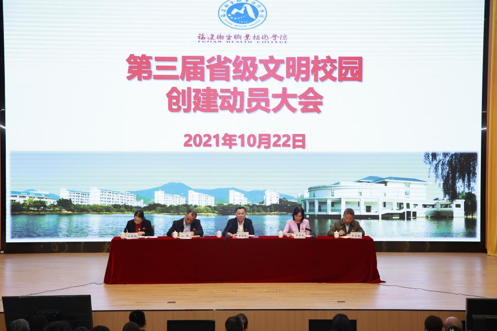 10月22日上午,我校在學術報告廳召開第三屆省級文明校園創(chuàng)建動員大會。學校領導班子成員、副科級及以上干部、各部門評建工作聯(lián)絡員、全體教研室主任、實訓中心主任及副主任和專兼職輔導員共190余人參加會議。會議由黨委副書記李美華主持。