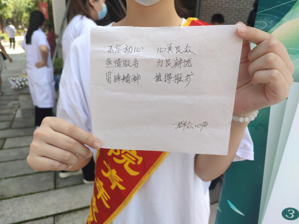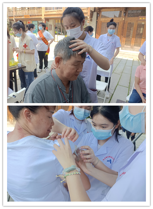本次活動還邀請學校康健俱樂部的成員為居民提供按摩和撥火罐服務,在藥香和煙火的氣息中,鄉(xiāng)鄰們享受著志愿隊員的“指尖巧技”,還有熱心居民寫下“不忘初心,心系民眾;熱情服務,為民解憂;雷鋒精神,值得推廣”的珍貴留言,為我校義診志愿服務隊的辛勤付出點贊。