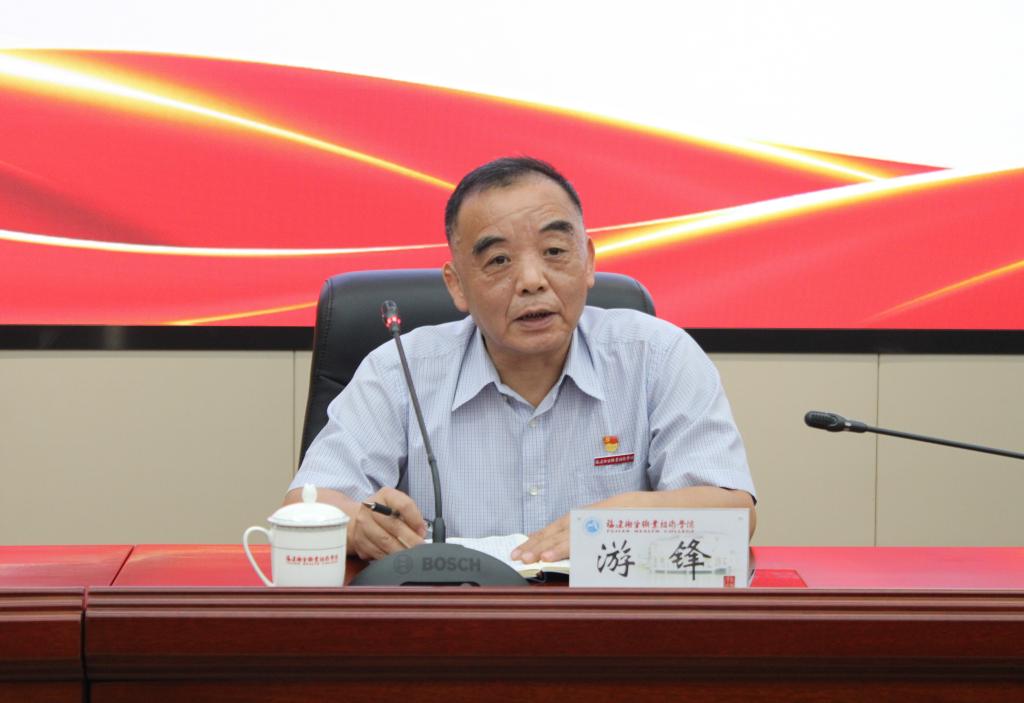 為進(jìn)一步加強(qiáng)學(xué)校黨風(fēng)廉政建設(shè),切實(shí)提高干部崇廉守紀(jì)意識(shí),9月21日,學(xué)校紀(jì)委召開(kāi)干部集體廉政談話會(huì)。紀(jì)委書(shū)記游鋒出席會(huì)議并講話,學(xué)校副科級(jí)以上干部到場(chǎng)參加。會(huì)議由紀(jì)委辦公室主任張夢(mèng)全主持。