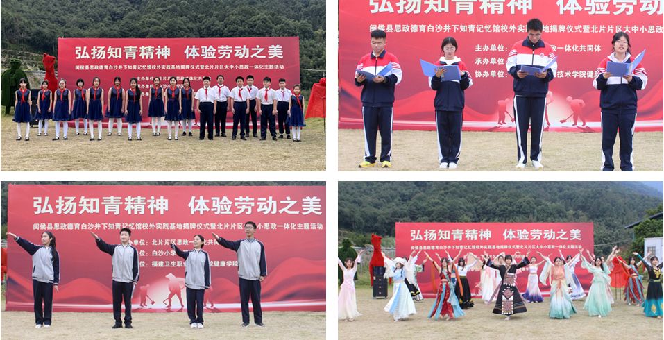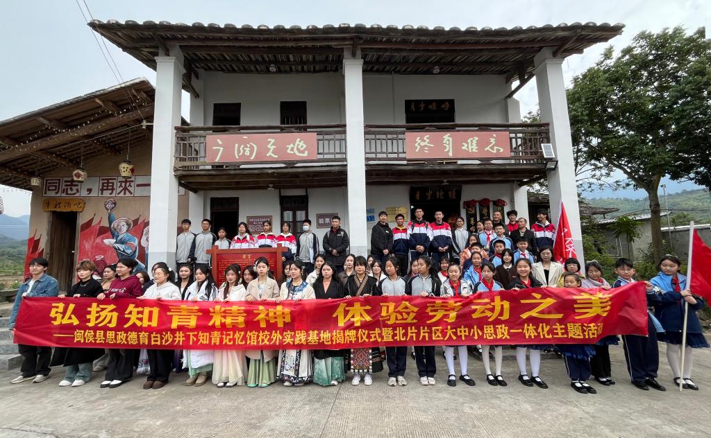 閩侯縣教育局、白沙鎮(zhèn)、井下村、閩侯四中、白沙中學、白沙學區(qū)領導以及健康學院師生代表共同為白沙井下知青記憶館校外思政教育基地揭牌。
