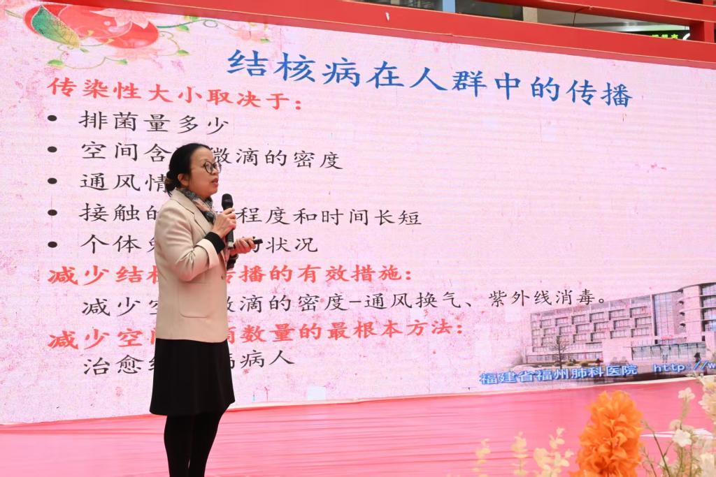 為響應(yīng)福建省衛(wèi)生健康委員會(huì)推動(dòng)結(jié)核病防治知識(shí)傳播活動(dòng)的號(hào)召,推動(dòng)全社會(huì)共同參與結(jié)核防治工作,營(yíng)造全民關(guān)注、全民參與的良好氛圍。在第30個(gè)“世界法治結(jié)核病日”來(lái)臨之際,3月16日,我校聯(lián)合福建省疾病預(yù)防控制中心、福建省防癆協(xié)會(huì)、福建省科普服務(wù)中心、福建醫(yī)科大學(xué)附屬協(xié)和醫(yī)院、福建省福州肺科醫(yī)院、福建省級(jí)機(jī)關(guān)醫(yī)院、閩侯縣衛(wèi)生健康局、閩侯縣疾病預(yù)防控制中心和閩侯縣甘蔗街道社區(qū)衛(wèi)生服務(wù)中心等單位,在閩侯縣萬(wàn)家廣場(chǎng)舉辦主題為“全面行動(dòng) 全力投入 全民參與 終結(jié)結(jié)核”的結(jié)核病防治宣傳志愿活動(dòng)。福建省防癆協(xié)會(huì)副秘書(shū)長(zhǎng)黃智忠、福建省福州肺科醫(yī)院副院長(zhǎng)陳曉紅、閩侯縣疾病預(yù)防控制中心主任黃小龍、閩侯縣疾病預(yù)防控制中心副主任陳曉燕、福建省級(jí)機(jī)關(guān)醫(yī)院護(hù)理部主任高云以及公共衛(wèi)生與健康管理學(xué)院黨政班子成員、師生黨員、學(xué)生志愿者以及各協(xié)辦單位來(lái)賓參加活動(dòng)。活動(dòng)通過(guò)“科普宣講+文藝展演+互動(dòng)游戲+健康義診”四維聯(lián)動(dòng)模式,將專(zhuān)業(yè)醫(yī)學(xué)知識(shí)轉(zhuǎn)化為群眾喜聞樂(lè)見(jiàn)的宣教形式,推動(dòng)結(jié)核病防控知識(shí)深入基層,共同創(chuàng)建健康的社區(qū)生活。