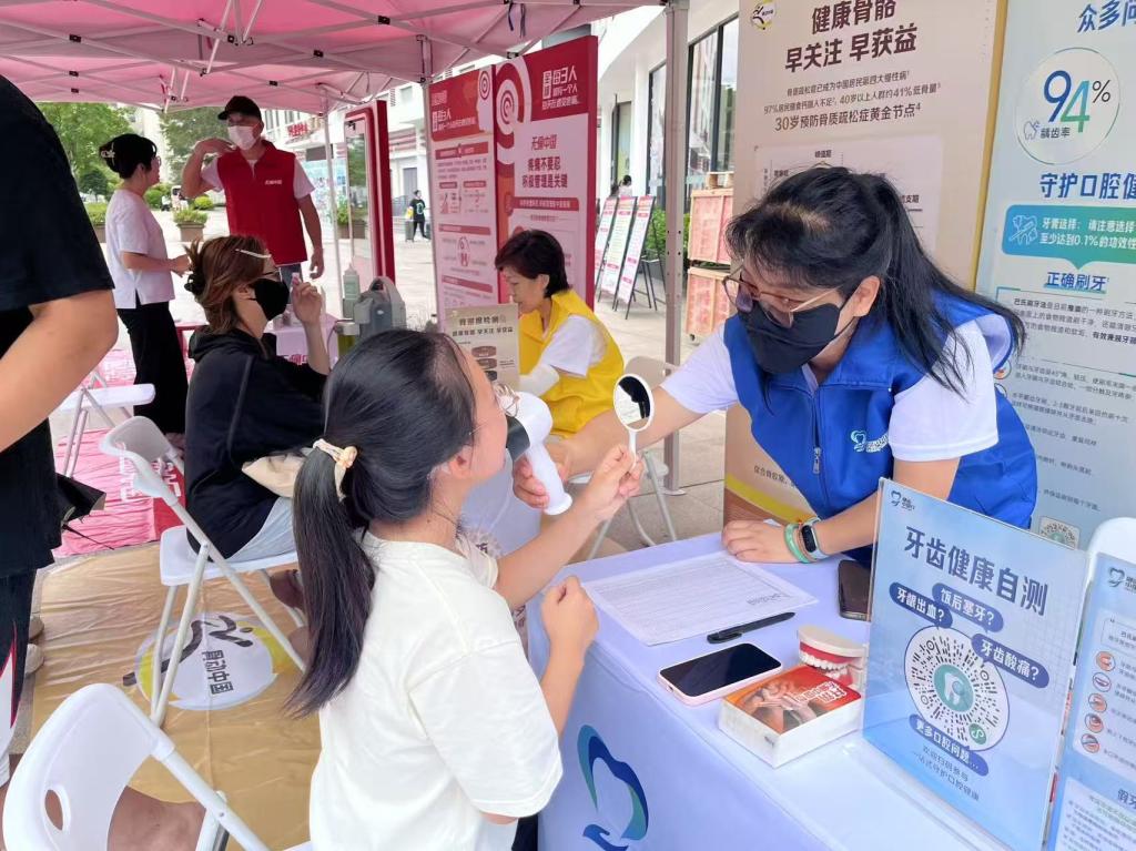 隨后,藥學院第二黨支部聯合福建同春藥業股份有限公司經營第二黨支部、赫力昂(中國)在第一食堂旁開展口腔健康、骨健康科普公益活動。赫力昂(中國)醫藥公益團隊通過現場義診為師生進行口腔檢查、骨密度篩查并提供個性化健康建議,以圖文展板和手冊發放形式普及齲齒預防、骨質疏松干預等知識。藥學院學生在企業專家指導下參與科普服務。藥學院第二黨支部黨員代表協助現場組織,切實提升師生健康素養,彰顯醫藥衛生行業服務社會的責任擔當。
