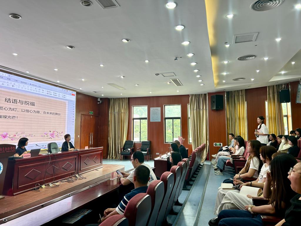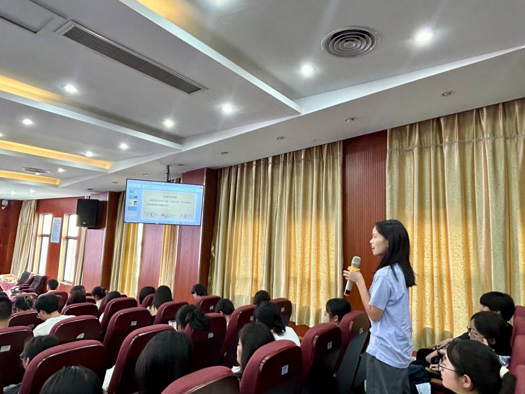 講座后,同學們圍繞“職場自驅力培養”“專業學習與實踐結合”等問題踴躍提問。歐陽泗妹以自身考取雙執業藥師(西藥師/中藥師)及營養師證書的經歷,分享“每日早起1小時學習”的堅持,寄語學子:“制定小目標、保持好奇心、在實踐中創新——這是成長的‘金鑰匙’。”最后,我校工會副主席陳盛蘭向歐陽泗妹獻花,致敬其“以實干贏得信任,以擔當帶動發展”的職業精神。