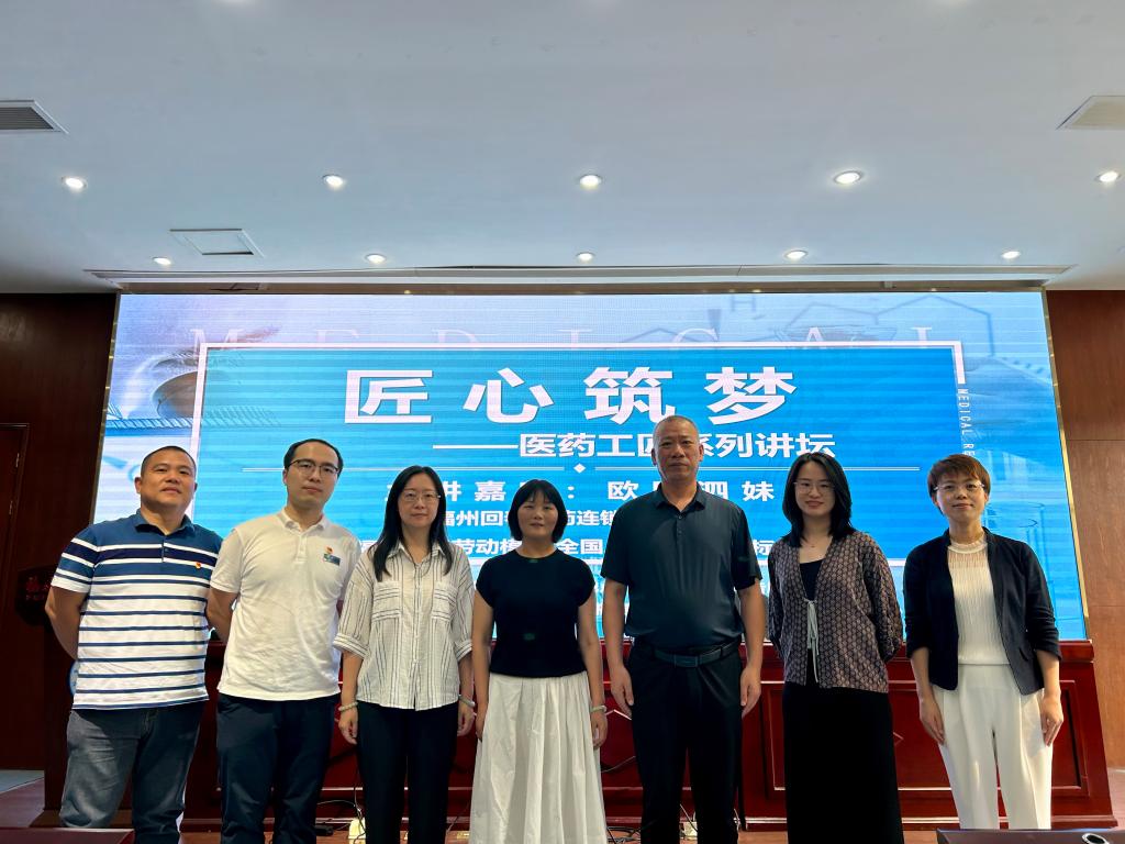 為深入貫徹習近平總書記關于大力弘揚勞模精神、勞動精神、工匠精神的重要指示,強化青年學子“工匠精神”與責任擔當,6月19日,藥學院第二黨支部策劃并開展“勞模領航傳薪火,醫藥公益踐初心”主題黨日活動。活動以“黨建+匠心傳承+公益服務”模式,搭建校企協同育人平臺,激勵青年學子樹立職業理想,同時以專業力量守護師生健康。福州市工業工會副主席劉鳳飛、李崴,校工會相關負責人、藥學院第二黨支部成員以及福建同春藥業股份有限公司經營黨支部成員參加本次活動。