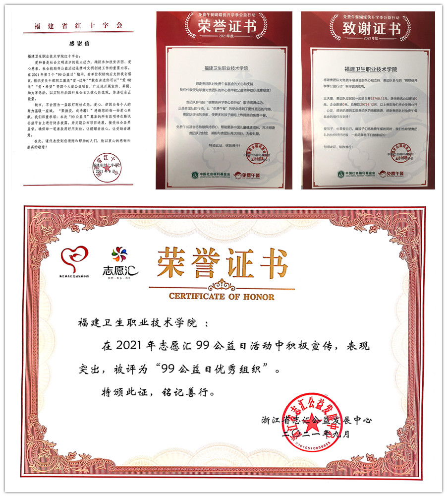 近日,我校榮獲浙江省志匯公益發(fā)展中心頒發(fā)的“99公益日優(yōu)秀組織”稱號(hào),并收到了來(lái)自中國(guó)社會(huì)福利基金會(huì)和福建省紅十字會(huì)的兩封感謝信。感謝信中表?yè)P(yáng)了我校2021年“99公益日”活動(dòng)宣傳及募捐的成果,感謝全校志愿者的辛勤付出。這不僅僅是一聲聲真摯的感謝,也是對(duì)我校近年來(lái)積極參與公益活動(dòng)的充分肯定。