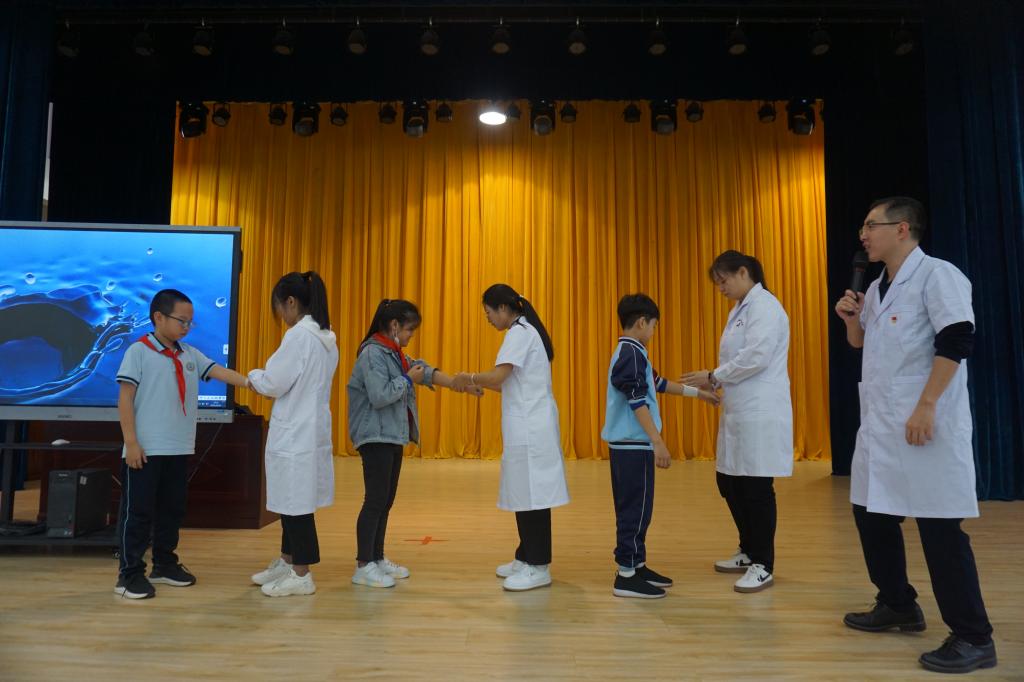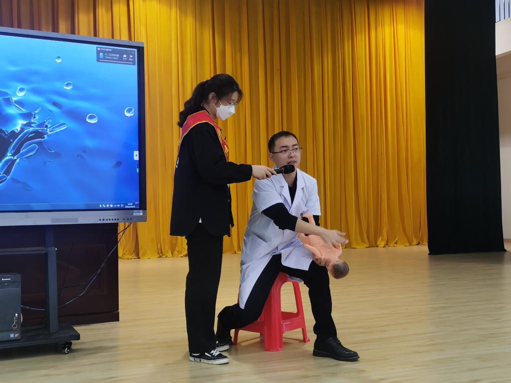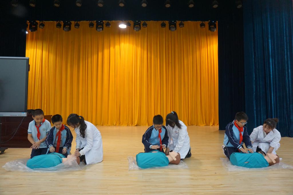 掌握急救技能,呵護孩童成長。健康管理系團總支紅十字學生分會的志愿者們為學生講解環形包扎和螺旋包扎的技巧要點并進行現場操作;同時還示范了心肺復蘇的步驟,重點講解搶救的黃金時間、如何判斷患者意識及搶救方法和措施,強調心肺復蘇中挽救生命關鍵的“黃金時間”,讓學生了解相關的醫療急救常識,培養學生“和諧、關愛、誠信、友善”的社會主義核心價值觀和人道主義精神。