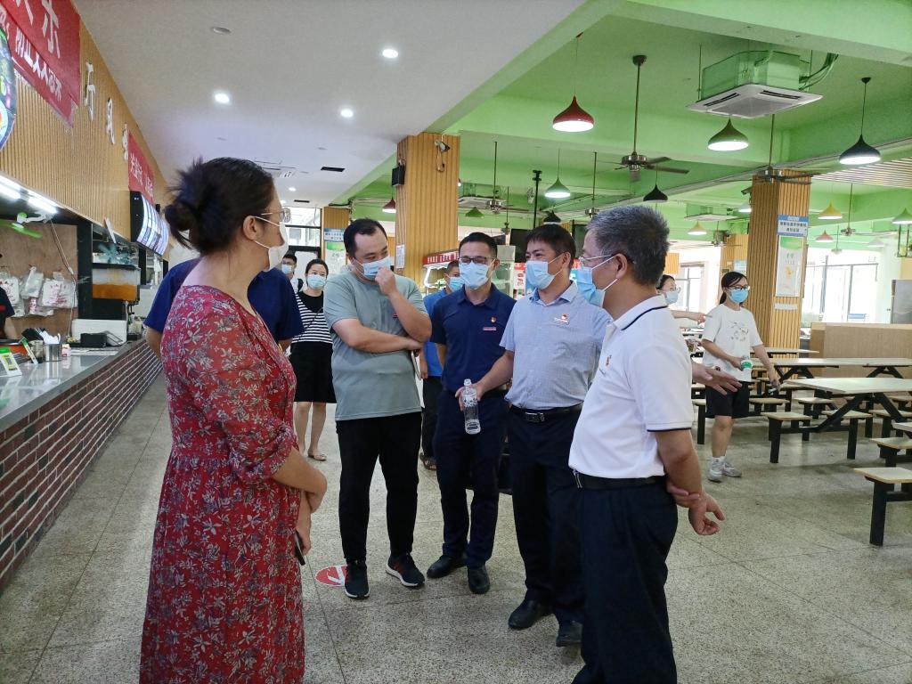疫情防控關鍵時期,為保障師生國慶期間“舌尖上的安全”,2021年9月30日,健康管理系“雙帶頭人”教師黨支部聯(lián)合院直機關黨總支后勤管理處、招標采購中心黨支部對學校第一食堂、第二食堂、明湖食堂及餐飲檔口的蔬菜、食用油和衛(wèi)生情況開展質(zhì)量檢測和督查。副校長陳貞健現(xiàn)場指導工作。