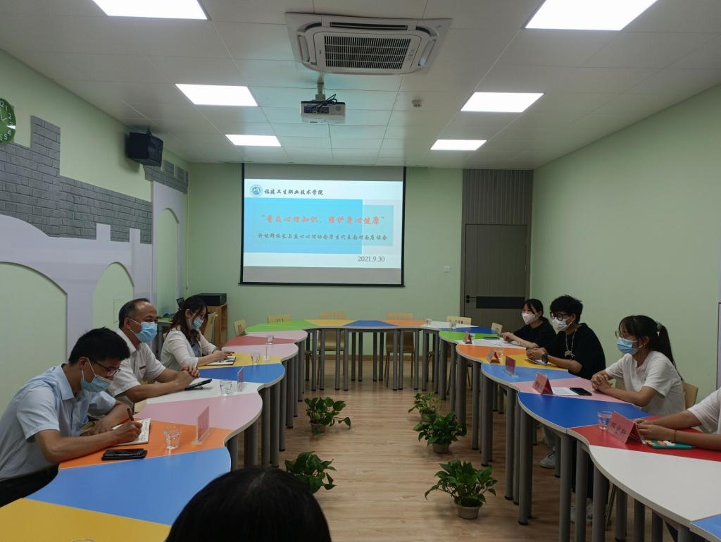 2021年9月30日下午,“普及心理知識,維護身心健康”調研暨校長許能鋒與益心心理協會學生代表面對面座談會在心理健康教育中心團體輔導室舉辦,黨政辦公室秘書科科長林來元和益心心理協會干事參加活動,活動由心理健康教育中心副主任鄭梅欽主持。