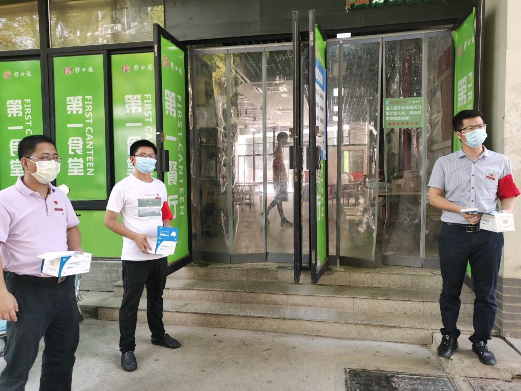 為了進一步提升學生的防疫意識,有效落實學校的疫情防控工作,支部黨員在中午就餐時間到第一餐廳與明湖餐廳,為過往的同學們派發口罩,開展疫情防控和相關政策宣傳活動,倡導師生及食堂工作人員養成良好的生活習慣,做好個人健康防護工作。