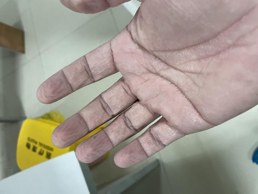 此時此刻的他們,儼然已經從懵懂少年蛻變成能獨當一面的戰士,雖然還只是實習生,但這場戰役對他們的考驗并沒有因此而降低標準,一套防護服一穿就是七八個小時,期間不能喝水,甚至不能上廁所。脫下手套和防護服的一瞬間,我們見到的那一雙雙被汗水浸濕褶皺的手,那是令人敬仰的雙手。
