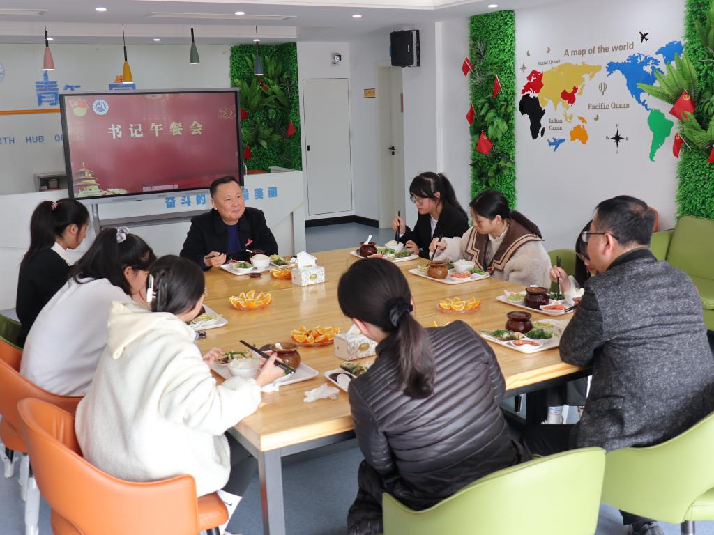 12月22日,校黨委書記曾武祈來到學校青年之家,與習近平新時代中國特色社會主義思想讀書社成員進行溝通交流,與聯(lián)系宿舍的同學進行溫馨午餐會。