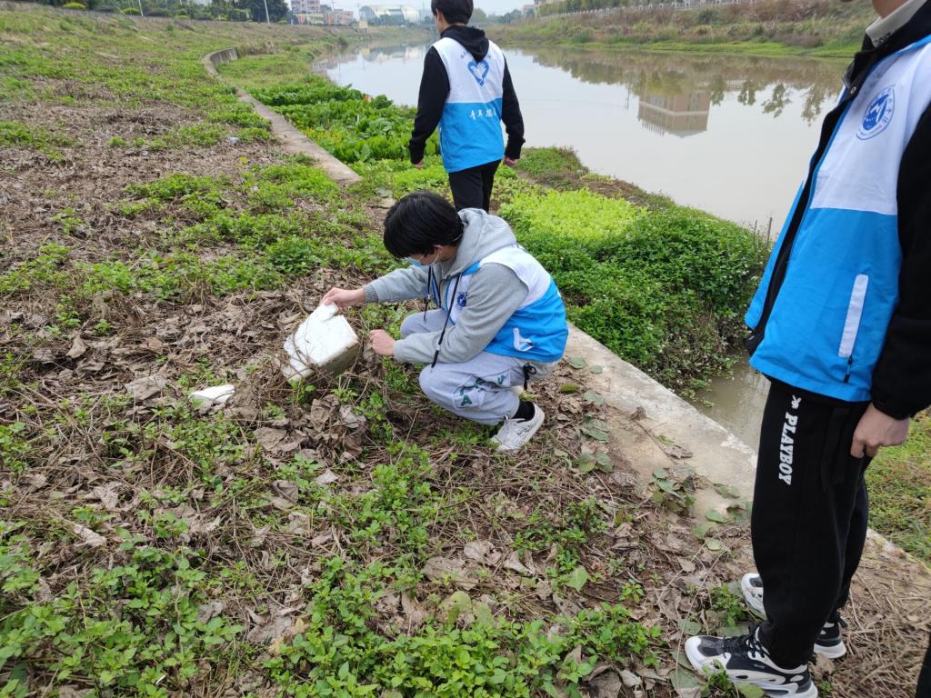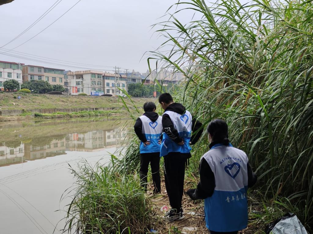 簡短分工后,隊員們圍繞"水清、河暢、岸綠、景美"的目標迅速投入到勞動當中,對河道兩側沉積已久的垃圾及河道內漂浮物進行了清理。