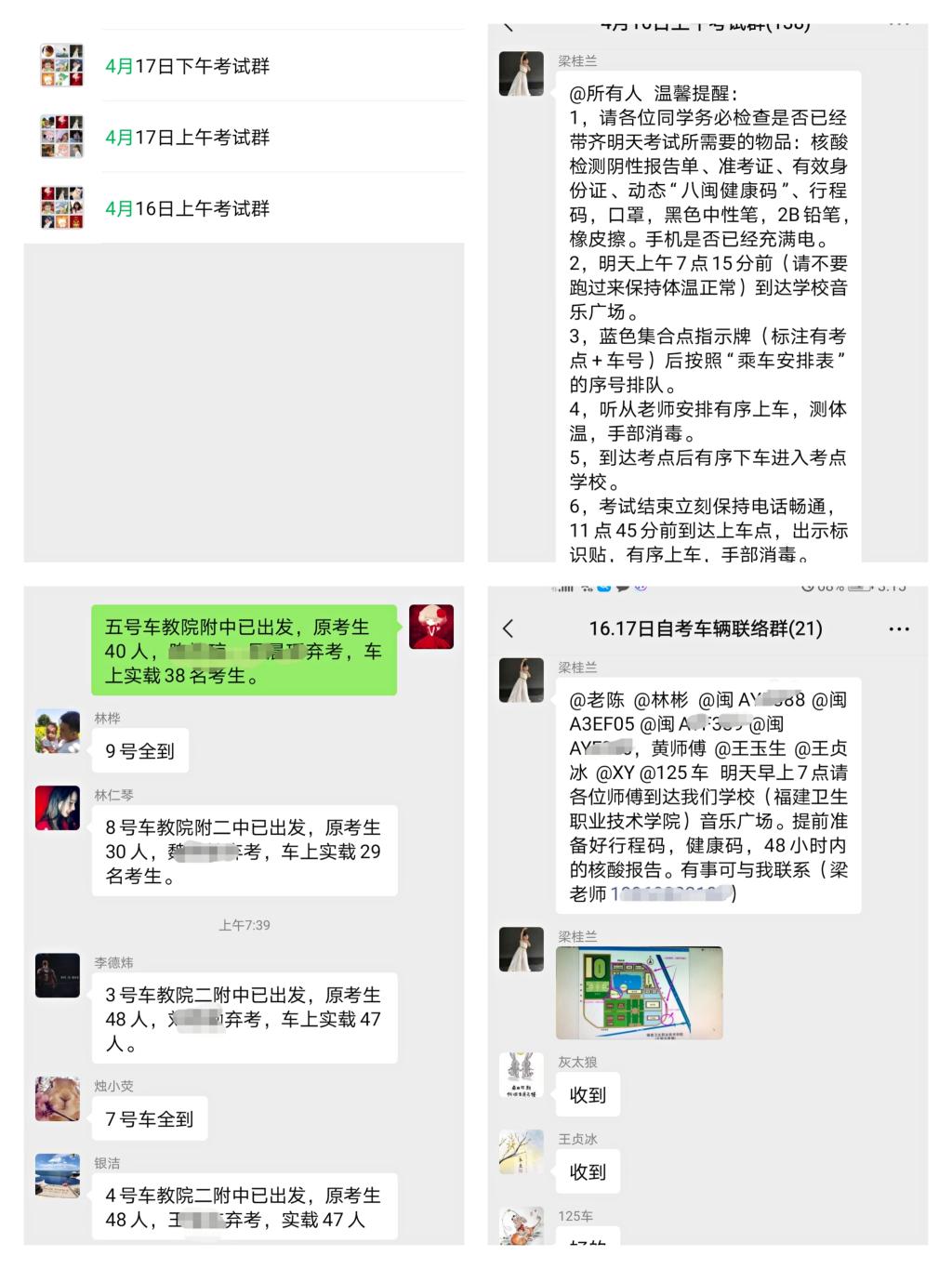 建立考生、工作人員、司機(jī)聯(lián)絡(luò)微信群