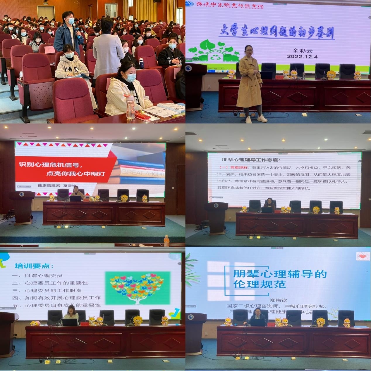 為提升學生心理朋輩隊伍對心理健康教育工作重要性的認識,熟悉心理委員、心理朋輩的工作職責,提升大家的心理專業技能,12月4日,我校舉行2022年心理委員、心理朋輩技能培訓,鄭梅欽、余彩云、黃秋蓮、田偉翠、夏雪梅和鄭曉婧六名心理健康老師帶來六場豐富精彩的主題培訓,并在培訓結束后進行結業考核,幫助同學們鞏固所學知識。
