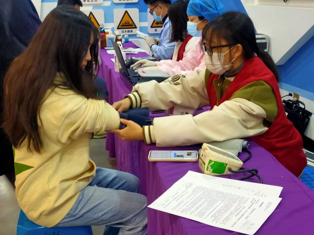 為了讓獻血志愿者有更舒適的獻血環境,工作人員將場地劃分為幾個功能不同的區域:填表區、體檢初篩區、飲水區、采血區、車下等待區。活動現場,工作人員耐心引導獻血志愿者,獻血志愿者們自覺排好隊伍,現場井然有序。獻血志愿者們的到來讓學堂這片小小的空間變得溫暖了起來。