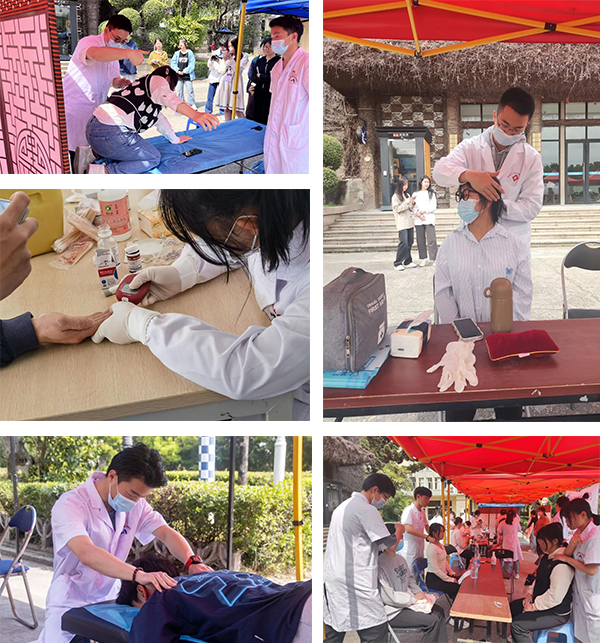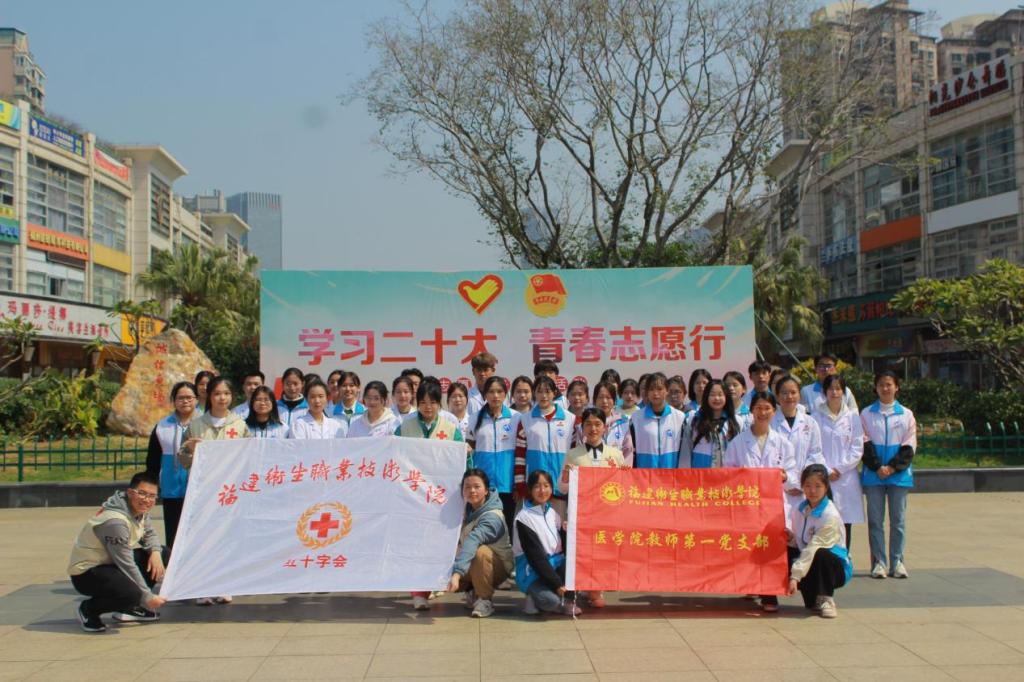 本次活動由醫學院教師第一黨支部的黨員專任教師及校紅十字會學生會員和臨床醫學專業、口腔醫學專業、康復技術專業的在校生共同參加,分三個場次進行。3月4日,在福州金山榕城廣場,黨員教師組織57名校紅十字會學生會員,以“學習黨的二十大,青春志愿行”為主題,為現場群眾提供醫療義診、體能測試、食品藥品衛生安全及健康知識宣傳等惠民便民服務。3月11日和3月18日,黨員教師帶領學校康健俱樂部成員前往福建幼兒師范高等專科學校和福建農業職業技術學院進行義診活動,為兩所院校師生提供體態評估、脊柱健康科普及疼痛管理、健康檢測等服務。